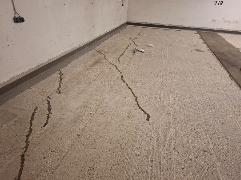 Eine Tiefgarage aus den 1970er Jahren: Rissbildungen, abgefahrener Asphalt, Hohllagen und tiefe Ölverunreinigungen bestimmen das Bild. Die Substanz ist angegriffen, der Zustand kritisch. Eine umfassende Sanierung ist nicht nur sinnvoll – sie ist dringend notwendig.